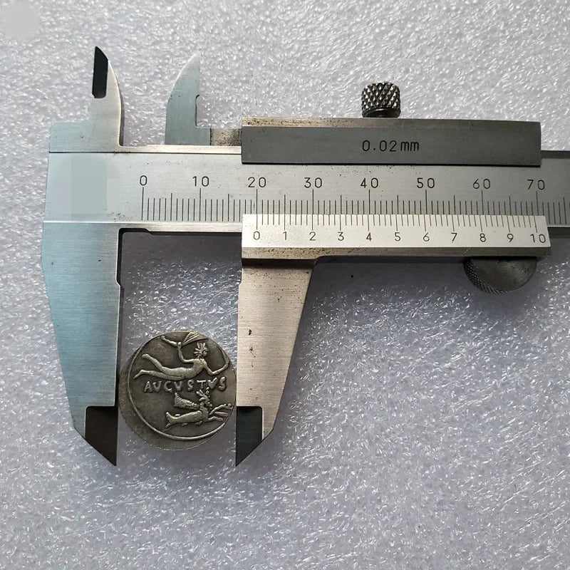 This replica coin faithfully reproduces a silver denarius issued under Emperor Augustus around 18–17 BCE, featuring a symbolic design celebrating the dawn of a new era for Rome. Augustus, the first Roman Emperor, ruled from 27 BCE to 14 CE and transformed the Roman Republic into the Roman Empire, ushering in decades of stability and prosperity known as the Pax Romana.