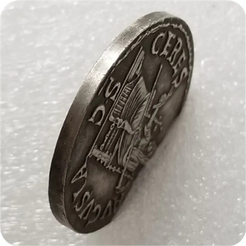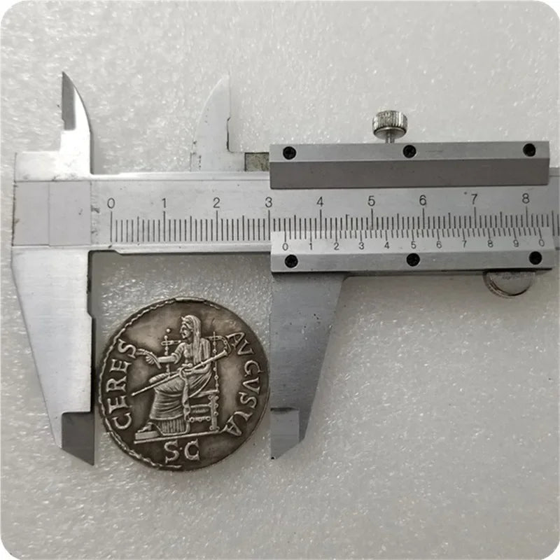This replica coin reproduces a bronze sestertius struck under Emperor Claudius (41–54 CE), one of the Julio-Claudian emperors. It honors Ceres, the Roman goddess of agriculture, fertility, and abundance, reflecting Claudius’ policies of ensuring Rome’s food supply and public grain distribution.